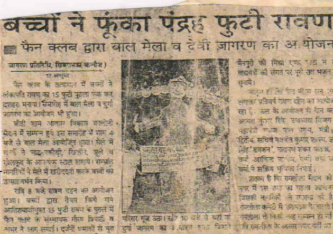 नगर धार्मिक व्यवसायी 1995 से शुरुआतआवास विकास के सेक्टर 3 के पार्क में रावण जलाया..19 वर्ष की उम्र में..'अवर सिटी' नाम से टीबी चैनल शुरू किया कुछ ही समय में जिसकी ख्यातिचहुं ओर हो गई..जनवरी 2011छिबरामऊ महोत्सव एक ऐसा प्रयास है जिससे नगर की प्रतिभाओ का एक मंच मिला है2014 में सम्मान..जिलाधिकारी श्री अनुज कुमार झा जी वर्तमान शिक्षा राज्यमंत्री श्री विजय बहादुर पाल जी द्वारा नई सोच, नया नेतृत्व युवाओं, किसानों और आम नागरिकों के उज्ज्वल भविष्य के लिए हमारे साथ जुड़े हमारे प्लेटफार्म के साथ जुड़े Facebook Instagram Youtube